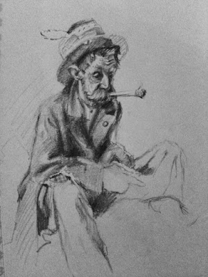 Drawing for the day... Another Rockwell. I really have fun drawing hands like he does. You almost can't ruin them. They are so expressive, like most other features he captures. He borderlines on caricature. Not like the kind that will draw a cartoon version of you at Six Flags that hardly looks like you. Those drawings always crack me up. They never look like the person they are drawing. They get the main ideas down, like the person has glasses, dark hair, and blue eyes... past that, they just look like a goofy face. I actually talked with one of those artist at Six Flags a few years ago. They have to take these classes about how to draw all the facial features in a specific way so they are never at a loss. They have like 6 different nose they have to know how to draw, 6 different mouths, etc... I thought that was pretty interesting. I also thought it was interesting this girl told me all about it. And also how she said she wasn't much of an artist, but this was the only job she cold get. I was surprised at her candor, and at the Denver Six Flags staff of artists. At the time, I remember being jealous when she told me that. There she was not wanting to really even be there, and there I was a few years left in college wishing I was in her shoes... I'd probably still do that job... I would, however, probably get fired not drawing in their style...